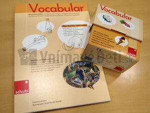 Kartičky s obrázkami sú roztriedené do rôznych kategórií – balíčkov, obrázkových slovníkov (dom a záhrada, zdravie, doprava a iné). Ku každému balíčku kariet (obrázkovému slovníku) je pripravený vynikajúci pracovný zošit, v ktorom sú zobrazené všetky obrázky zo slovníka v čierno-bielej verzii. Sú určené na kopírovanie, strihanie, vymaľovanie, triedenie a ďalšie aktivity s obrázkami. Okrem toho pracovný zošit obsahuje veľké farebné obrázky formátu A4, v ktorých sú obrázky zasadené do konkrétneho prostredia (napríklad obrázky zeleniny v prostredí trhu či nákupného centra). Deti tak môžu opisovať obrázky, hľadať jednotlivé detaily v celku. Takto máte k dispozícii materiál, ktorý ponúka výborné možnosti na doplnenie si slovnej zásoby a zároveň aj nácvik správnej tvorby viet. Všetky spracované témy obrázkových slovníkov Vocabular spolu s pracovnými zošitami nájdete tu.