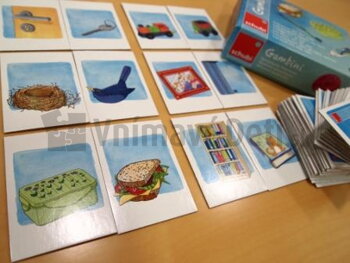Najlepší spôsob, ako priblížiť deťom nové slová, sú obrázkové hry. Obrázky v hrách Gambini sú dôkladne vyberané podľa toho, na čo sa ideme s deťmi pri hre zamerať. V hrách Podstatné mená 1 a Podstatné mená 2 sú obrázky triedené do rozličných kategórií (napr. ovocie, zelenina, oblečenie, zvieratá a pod.). Na začiatku sa deti s obrázkami zoznámia, naučíme ich pomenovať každý predmet na kartičke a hra sa môže začať. Zahrajte sa napríklad pexeso, kde pár tvorí akákoľvek dvojica predmetov z rovnakej kategórie. Alebo hrajte obrázkové hádanky, ktorý predmet do skupiny nepatrí. Ďalšia inšpirácia na rozšírenie slovnej zásoby a najmä rečového prejavu súvisí s tvorbou viet na tému, ktorý predmet má aké využitie. Ako správne použiť predložky vo vetách naučia deti obrázkové karty na tému Kam to patrí? či karty s rôznymi časťami rozdielnych predmetov. Deti hľadajú a priraďujú súvisiace karty, ústne odôvodňujú svoju voľbu, tvoria vety a súvetia. Posledná obrázková hra z ponuky Gambini obsahuje karty s navzájom protikladnými obrázkami (ťažký – ľahký, tenký – hrubý).