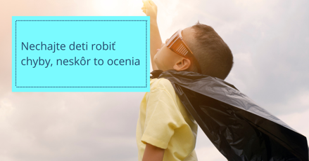 Chyby robíme všetci. Sú prostriedkom procesu učenia sa. Niekedy nám stačí učiť sa z chýb iných, lebo ich odpozorujeme, a skúsime tak riešiť veci inak. Inokedy si zas chyby musíme vyskúšať na vlastnej koži. Buďme za ne vďační, lebo nám pomáhajú k poznaniu, hľadaniu našich priorít, posilňujú náš charakter a trpezlivosť. Preto učme aj naše deti prijať ich.